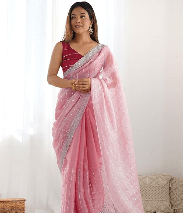 Women’s Shimmer Chiffon Sequence Embroidery Saree